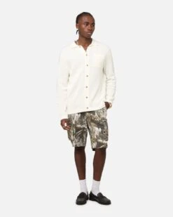 XXIII Zyair Knit Rib Long Sleeve Button Up Shirt Cream